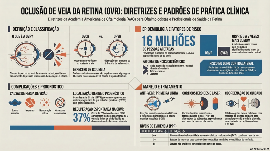 É fundamental que o paciente com OVR seja encaminhado a um médico de atenção primária (clínico geral ou cardiologista) para o manejo adequado de suas condições sistêmicas (como a pressão alta e o diabetes). Como sua oftalmologista, comunicarei os resultados dos exames diretamente ao médico que gerencia sua saúde geral, pois a coordenação desse cuidado é essencial.